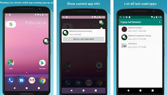 آخر تضمين لدينا هو تطبيق خفيف الوزن سيتم تشغيله في خلفية هاتفك لاكتشاف التطبيق الذي يتسبب في ظهور الإعلانات المنبثقة على واجهة المستخدم الخاصة بك. يختلف Popup ad Detector عن تطبيقات مكافحة الفيروسات الأخرى التي ستحصل عليها في متجر الألعاب. يمكن استخدامه إذا لم تتمكن من اكتشاف البرامج الإعلانية التي تعمل على جهازك لفترة طويلة.