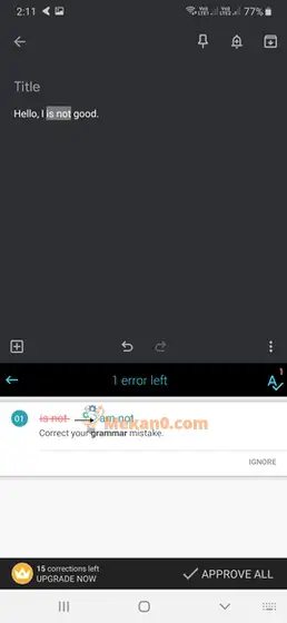 باعتبارها لوحة مفاتيح نحوية ، فإن Grammarly Keyboard لا مثيل لها. يهتم بالإملاء والنحو بالإضافة إلى قواعد الترقيم الأعمق . وفقًا للمطورين ، تم اختبار النص بحثًا عن 400 خطأ محتمل. من الواضح أن العامل الوحيد الذي يفسد الصفقات هو أنك تحتاج إلى اتصال بالإنترنت حتى يعمل تصحيح القواعد. أيضًا ، لا يمكنك توقع ميزات إضافية مثل GIF أو دعم الملصقات.