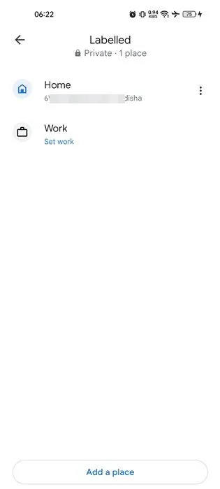 5. سيؤدي هذا إلى فتح الصفحة المصنفة في خرائط Google. ستجد هنا قسمين – المنزل والعمل .