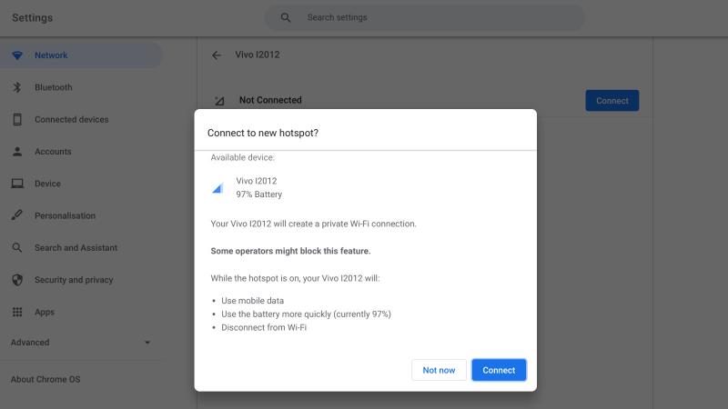 يجب أن تكون الآن قادرًا على توصيل جهاز Chromebook بالإنترنت عبر هاتفك الذكي. إذا وجدت أن جهازك ليس لديه القدرة على استخدام التوصيل الفوري .