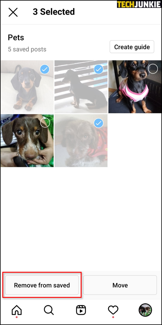 5. من الخيارات، اختر “حذف المجموعة” و “حذف” لإزالة كل تلك المنشورات من المجلد المحفوظ لديك.