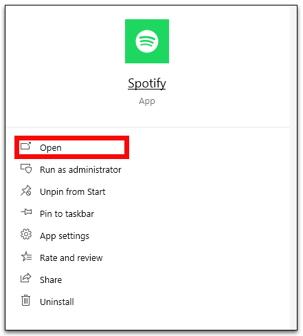 افتح قائمة ابدأ وقم بتشغيل تطبيق Spotify أو انقر على أيقونة Spotify الخضراء في علبة النظام.