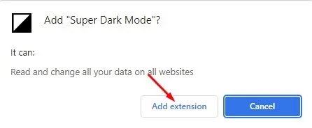 3. بعد ذلك ، انقر فوق الزر Add extension في موجه التأكيد.