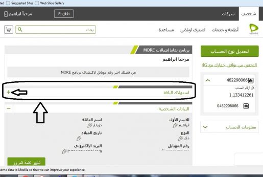 بعد النقر على علامة الذائد سيفتح لك نافذة صغيرة بها كل الاستهلاك وميعاد الدفع وكم مبلغ الاشتراك