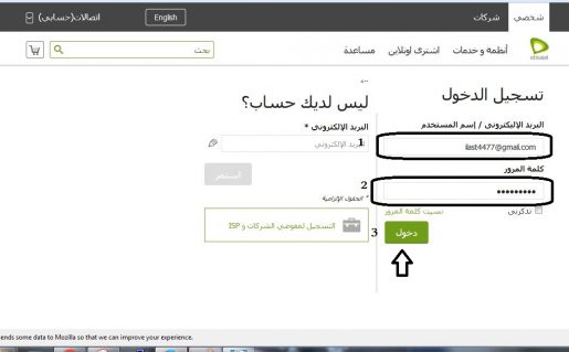 انشاء حساب على etisalat لمعرفة استهلاك الجيجات