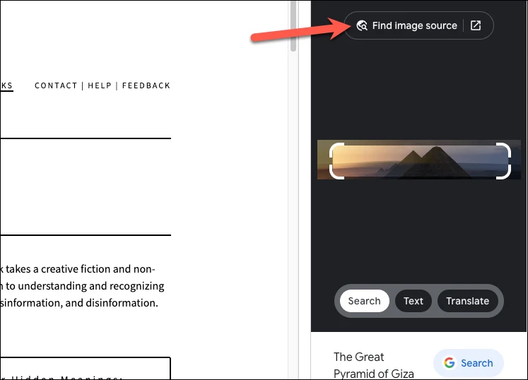ولكن إذا كنت تريد البحث في صفحات الويب التي تحتوي على تلك الصورة بالضبط للعثور على المصدر ، فانقر فوق خيار “البحث عن مصدر الصورة” على اللوحة.