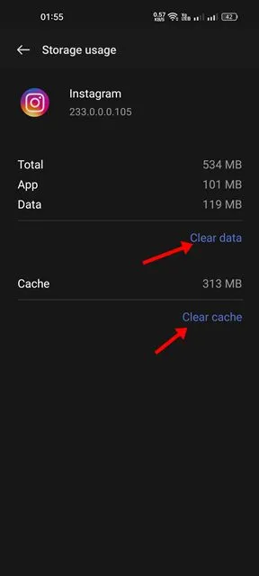6. امسح ذاكرة التخزين المؤقت والبيانات في Instagram