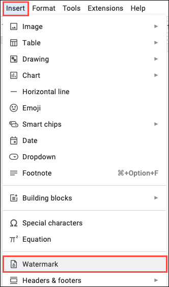 تتمثل ميزة العلامة المائية في أنها تنطبق على جميع الصفحات في المستند الخاص بك. إذا كنت تريد تطبيق خلفية صورتك على صفحة واحدة فقط ، فيمكنك استخدام خيار الإدراج بدلاً من ذلك.