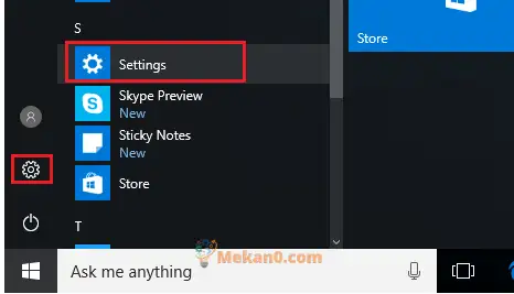 يمكن تنفيذ العديد من مهام ويندوز 10 من صفحة الإعداد الخاصة به. للوصول إلى صفحة الإعدادات ، انقر فوق ابدأ -> إعدادات كما هو موضح في الصورة أدناه.