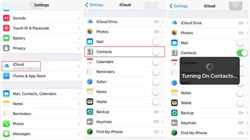 - تحت خيار iCloud ، تحتاج إلى التحقق من حساب iCloud وتشغيل “جهات الاتصال”.