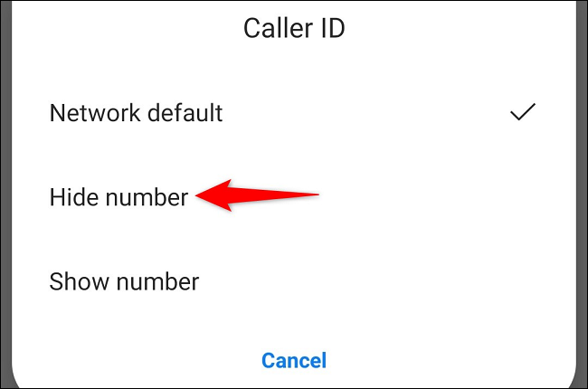 في القائمة المفتوحة ، اختر “إخفاء الرقم”.