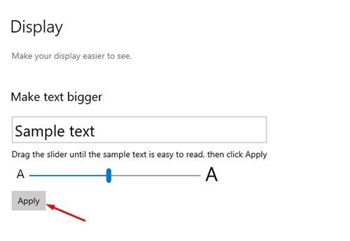 5. لتأكيد حجم النص الجديد ، انقر فوق الزر ” تطبيق ” .