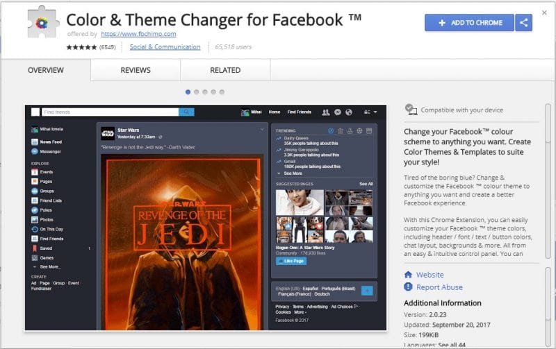 الخطوة الأولى: تحتاج إلى تثبيت مغير لون التمديد FB على متصفح Google Chrome.