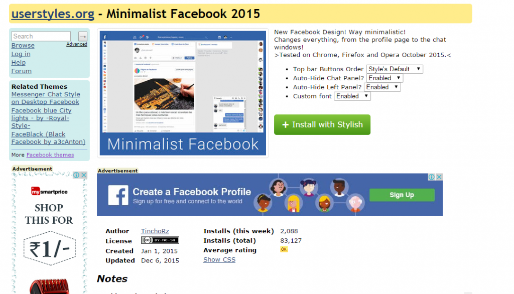 الخطوة الثالثة. الآن ستتم إعادة توجيهك نحو https://userstyles.org خمن ماذا! يحتوي هذا الموقع على عدد كبير من سمات Facebook ، هناك شيء واحد مؤكد أنك ستشعر بالارتباك بين ما يجب تحديده وأي منها يجب تخطيه. حدد أي منهم وانقر فوقه. ستحصل الآن على معاينة كاملة للموضوع الذي اخترته.