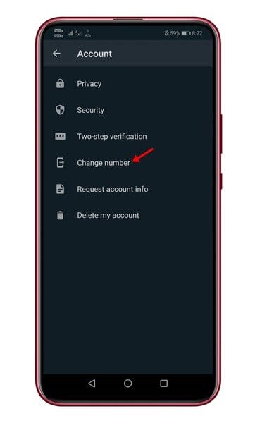 الخطوة 5. تحت صفحة الحساب ، اضغط على خيار “تغيير الرقم” .