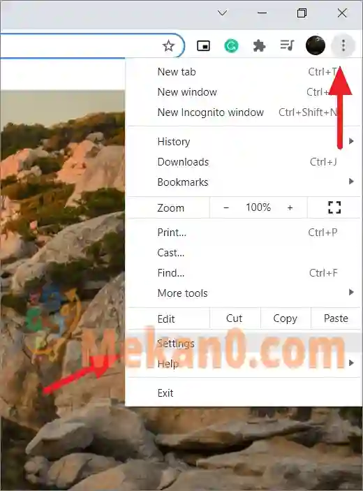 افتح Google Chrome ، وانقر فوق رمز علامة القطع (3 نقاط عمودية) في الزاوية اليمنى العليا ، وحدد “الإعدادات”.