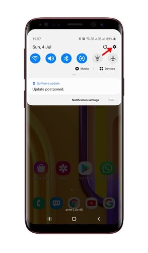 الخطوة الأولى. أولاً ، مرر لأسفل على لوحة الإشعارات وانقر على أيقونة ” الإعدادات “.