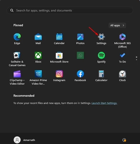 1. أولاً ، افتح تطبيق “الإعدادات” على جهاز Windows 11 الخاص بك.