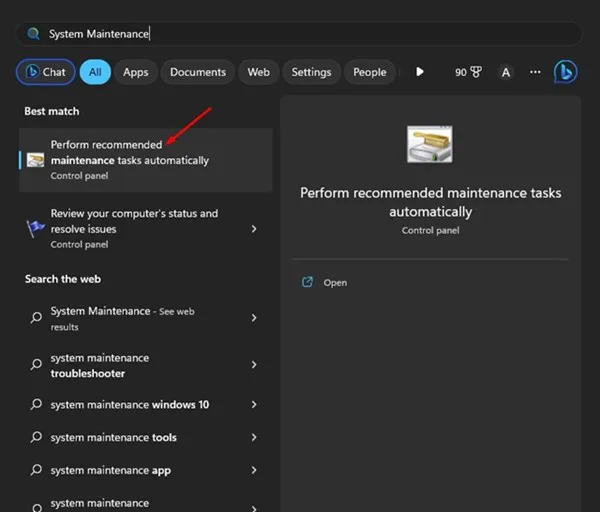 1. أولاً ، انقر فوق بحث Windows 11 واكتب صيانة النظام.