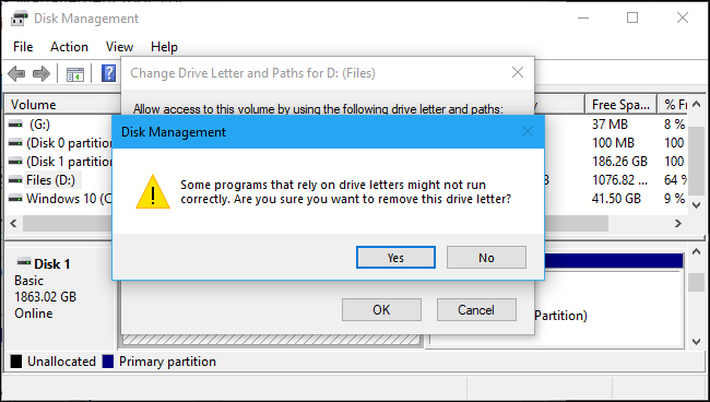 - You will now notice a Windows warning message stating that programs may not run correctly when hiding a disk, for example, if you store any files on this disk or install programs on it, you will not be able to access these files because the disk is hidden, so click ” Yes “in this message to continue.