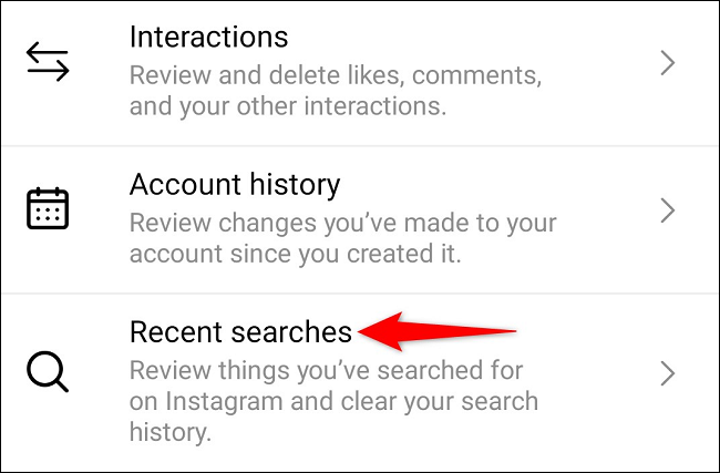 مرر لأسفل في صفحة “نشاطك” وانقر على “عمليات البحث الأخيرة”.