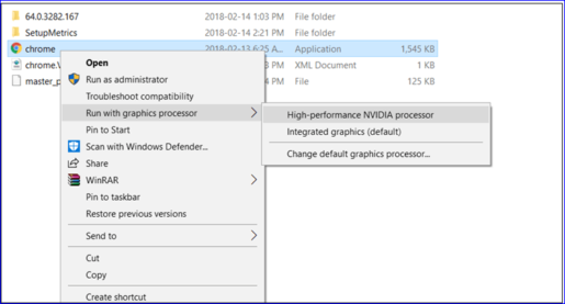 لتشغيل أى من الالعاب والبرامج على البطاقات المختلفة الداخلية أو الخارجيه ، فقك قم بالتوجة الى مجلد اللعبة او البرنامج ثم قم بالنقر على كليك يمين سوف تظهر لك صفحة يمكنك التحكم من خلالها ، من الخيارات المتاحه لك وهى Run with graphics processor ، وقم بالنقر عليها سوف تظهر نافذه اخرى قم بالنقرعلى كلمة High-performance NVIDIA processor وذالك اذا ارت تشغيل اللعبه على الكارت الخارجى ، اما بالنسبة الى الكارت الداخلى قم بالنقر على كلمة Integrated graphics .