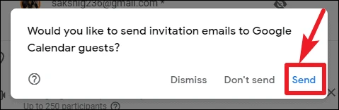 سيظهر مربع حوار يسألك عما إذا كنت تريد إرسال رسائل بريد إلكتروني للدعوات إلى ضيوف تقويم Google. انقر فوق “إرسال”.