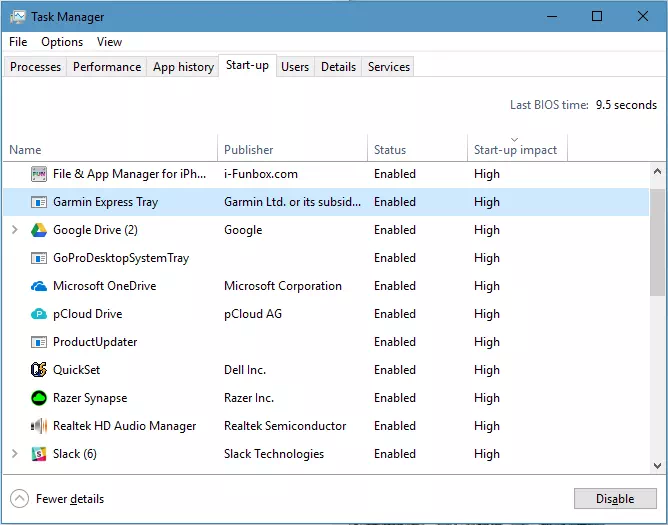 يجدر أيضًا التحقق من ذلك في علامة تبويب بدء التشغيل في إدارة المهام. يمكنك الوصول إلى هذا عن طريق النقر بزر الماوس الأيمن على شريط المهام واختيار إدارة المهام. إن معرفة ما يتم تعطيله ليس بالأمر السهل ، ولكن يمكنك استخدام Google للبحث عن العناصر ومعرفة ما إذا كانت ضرورية أم مفيدة أم لا.