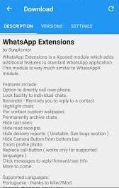 # 2 هذه هي الطريقة الثانية للتحقق من حالة WhatsApp مع عدم الكشف عن هويتك ، وتتطلب هذه الطريقة أن يكون لديك حق الوصول إلى الجذر على الجهاز. إذا كان لديك حق الوصول إلى الجذر ، فالرجاء تثبيت Xposed Installer على جهازك ثم باستخدام هذا التطبيق ، قم بتثبيت الوحدة المسماة Whatsapp Extensions على جهازك. أعد تشغيل جهازك بعد تثبيت هذه الوحدة ثم افتح الوحدة. من خلال استخدام الخيارات الموجودة داخل الوحدة ، ابحث عن وحدة إيصالات القراءة ثم قم بإيقاف تشغيلها. انتقل إلى Whatsapp ثم يمكنك البدء في عرض أي من وسائط الحالة هناك وستظل مجهول الهوية دائمًا.