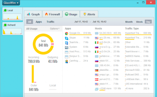 من خلال برنامج GlassWire سوف تلاحظ ذلك بنفسك عند استخدام الانترنت على جهازك
