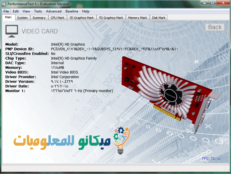 هنا قمت بالضغط على كارت الشاشة لمعرفه بعض التفاصيل عن كارت الشاشة الخاص بجهازي الكمبيوتر