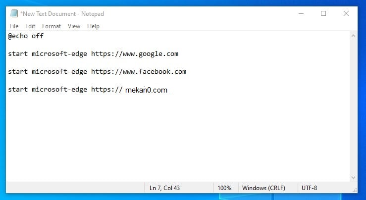 الخطوة الثالثة. انقر الآن على ملف> حفظ باسم . احفظ الملف بامتداد .bat مثل mekan0.bat .