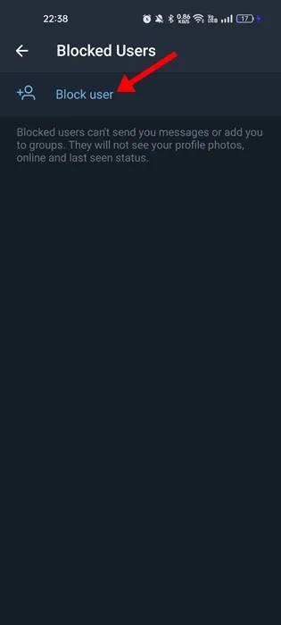 إذا كنت لا ترغب في تغيير إعدادات خصوصية المجموعات والقنوات ، فإن حظر المستخدم هو الخيار التالي الأفضل لمنع البريد العشوائي في Telegram.