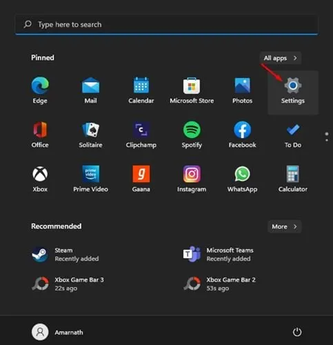1. أولاً وقبل كل شيء ، افتح الزر “ابدأ” في نظام التشغيل Windows 11 وحدد “الإعدادات” .