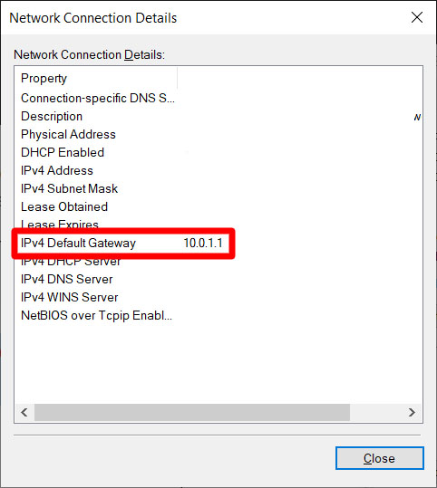 - سيكون عنوان IP لجهاز التوجيه الخاص بك بجوار IPv4 Default Gateway .