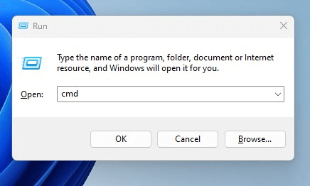 4. قم بتشغيل CMD كمسؤول باستخدام أمر RUN