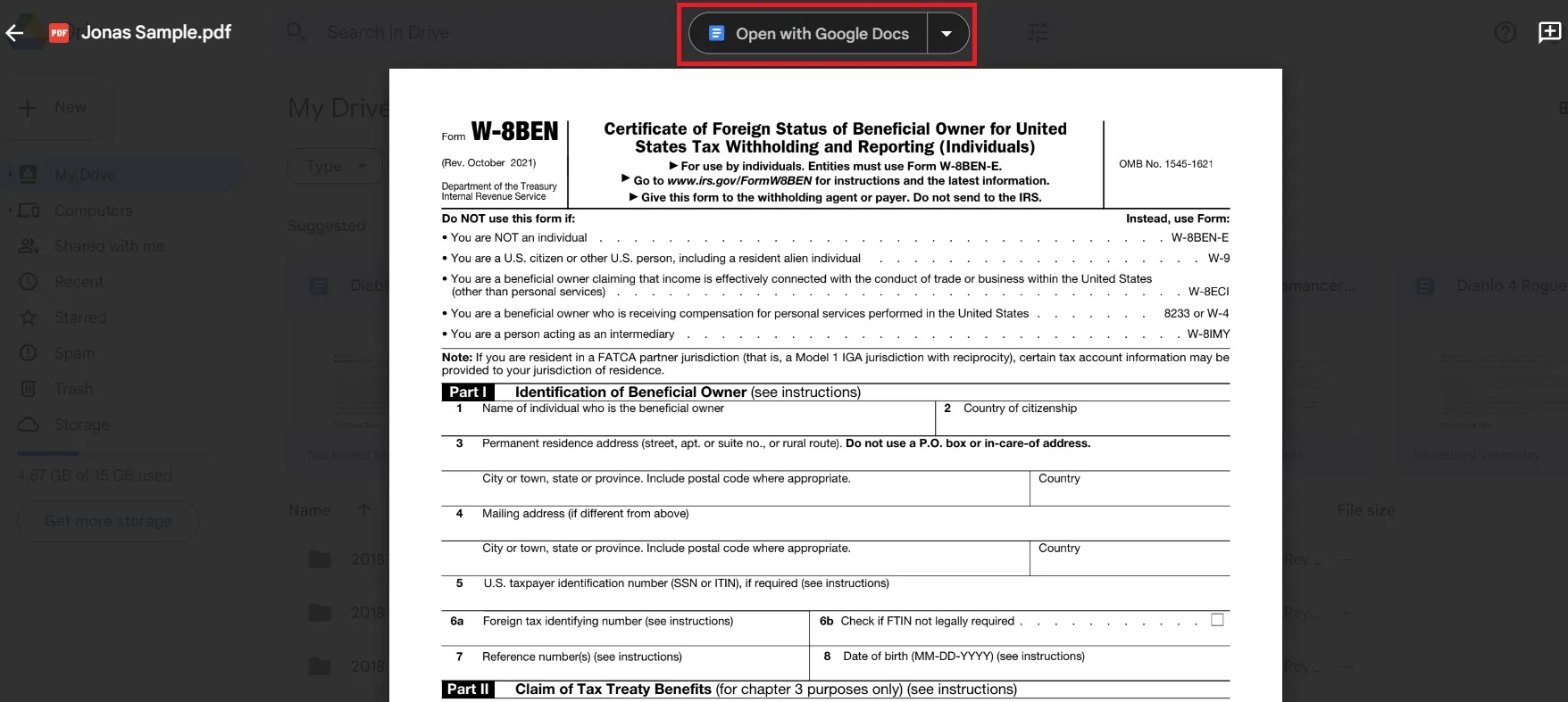 - افتح الملف وانقر على “فتح باستخدام محرر مستندات Google”.