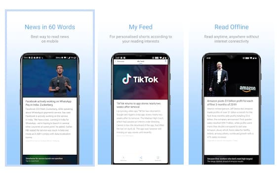 إنه أحد تطبيقات الأخبار الفريدة التي يحب مستخدمو Android امتلاكها. يجمع التطبيق الأخبار من مصادر إخبارية وطنية ودولية متعددة ويلخصها لتقديمها بتنسيق 60 كلمة أو أقل. لذلك ، فهو يُنشئ بشكل أساسي إصدارًا أقصر من الأخبار الشائعة ، مما يجعل قراءة الأخبار على الهاتف المحمول أمرًا مريحًا.