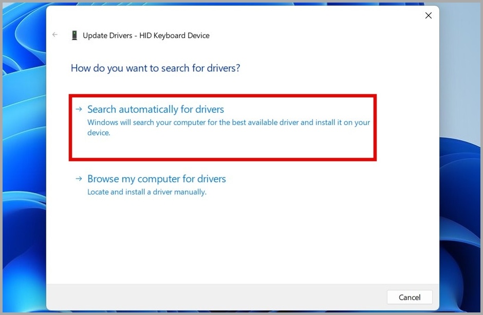 3. حدد البحث تلقائيًا عن برامج التشغيل واتبع التعليمات التي تظهر على الشاشة لإنهاء تحديث برنامج التشغيل.
