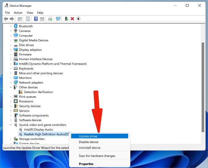 قد تؤدي برامج تشغيل الصوت التالفة أو القديمة على جهاز الكمبيوتر الذي يعمل بنظام ويندوز إلى عدم عمل صوت Realtek في نظام التشغيل ويندوز 11. اتبع الخطوات أدناه للعثور على برامج تشغيل Realtek وتحديثها إلى أحدث إصدار.