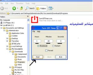 3 – اذا كان لديك اطفال لا يعرفون كيف يغلق الحاسوب وانت ذاهب الى العمل ولا تريد ان يطيل الوقت بهما امام الحاسوب فعليك بشغيل هذه الاداه وظبطها على وقت معين لاغلاق الحاسوب