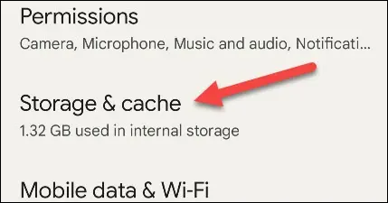 حدد “التخزين وذاكرة التخزين المؤقت” أو “التخزين” فقط من صفحة معلومات التطبيق.